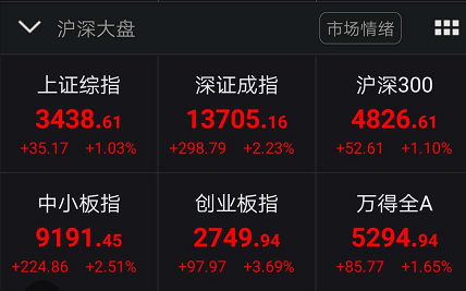 而在站稳3400点之后,大盘指数继续稳步上升。7月9日上午,沪指涨超1%,深成指则大涨超2.23%。
